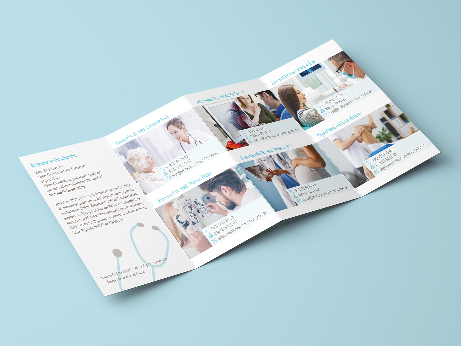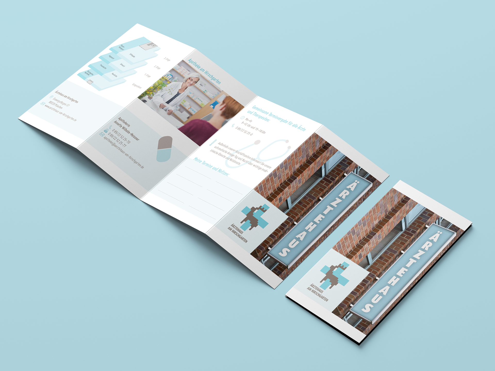 Der Folgende Flyer vom Ärztehaus sowie die Broschüre von der Getreidemühle sind Prüfungsprojekte im Rahmen meiner Ausbildung zur Mediengestalterin:
